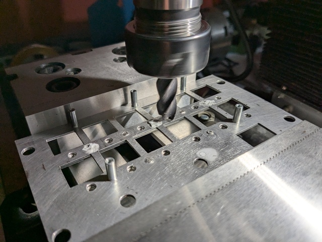 I filled the accidental holes with alloy wheel repair resin (I think it's polyester), and am now milling the excess off.