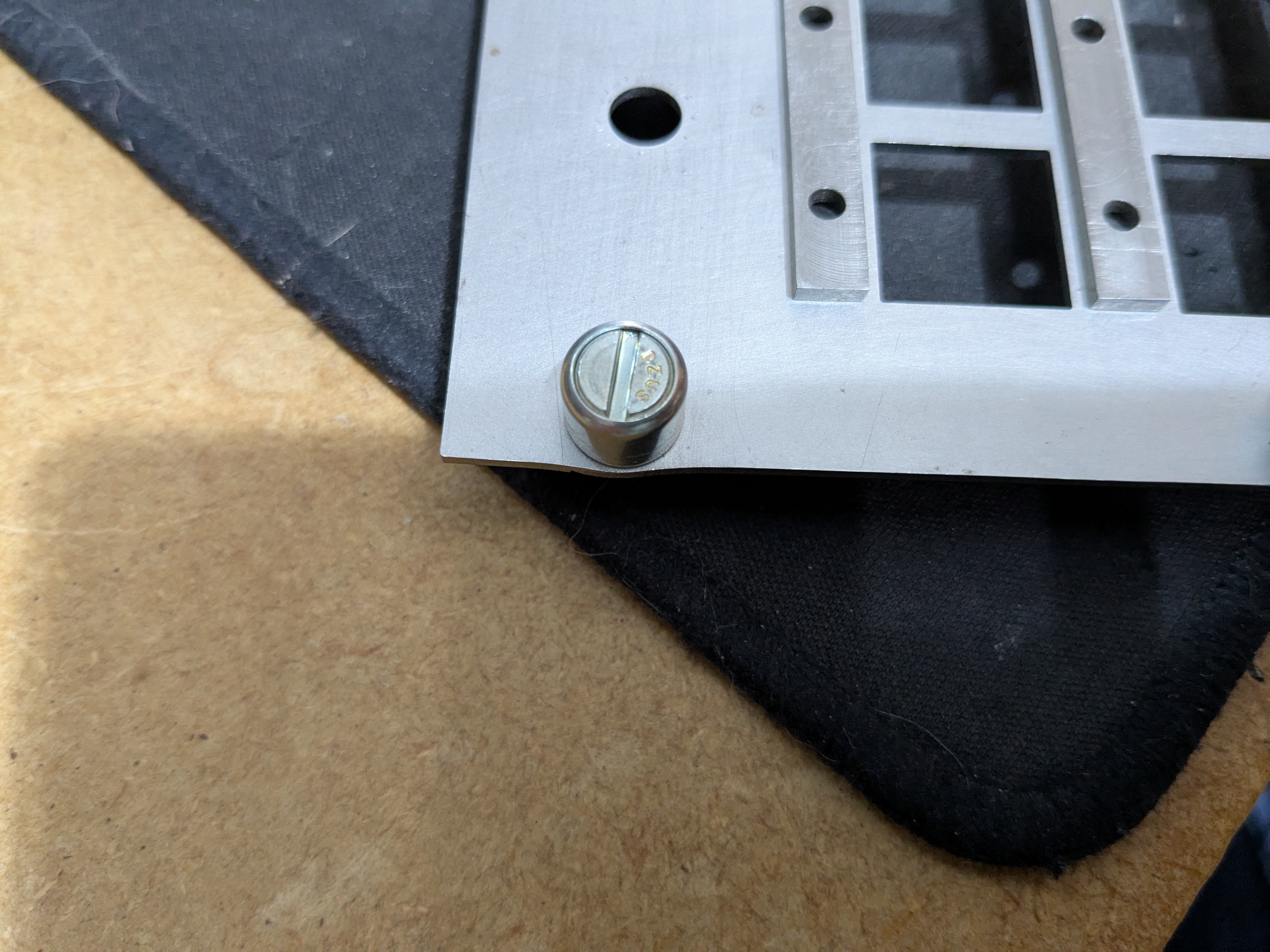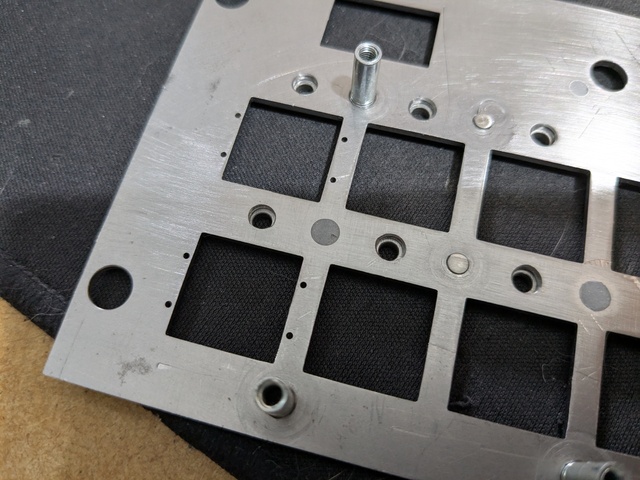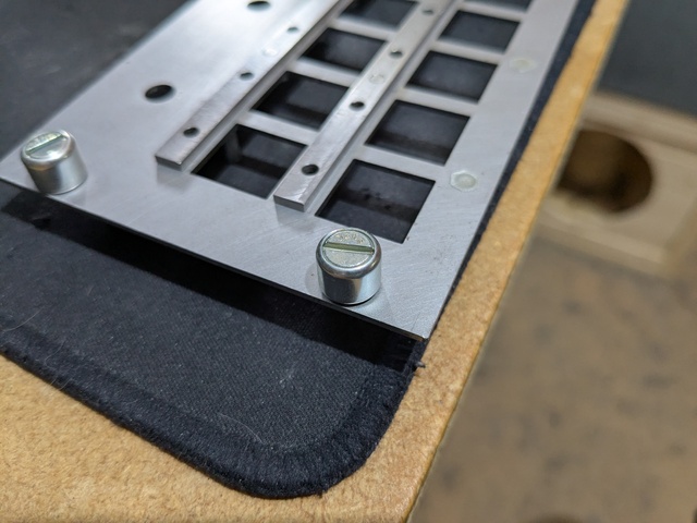 As expected, the thin wall on one side of the hole bowed out a little. Amusingly I've seen this same defect on the professionally made panels I'm replacing. If there is a next time I'll make the panel slightly too wide, fit the fasteners, then mill it to final size.