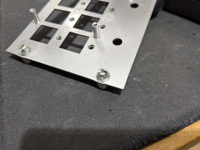 I've added the annoying 100° countersink to the holes and put the fasteners in place.